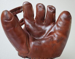 In addition to the service gloves and mitts in our collection, we have a few pieces not marked as military gloves such as this GoldSmith MacGregor “DW” Joe Cronin signature model fielder’s glove (Chevrons and Diamonds Collection).