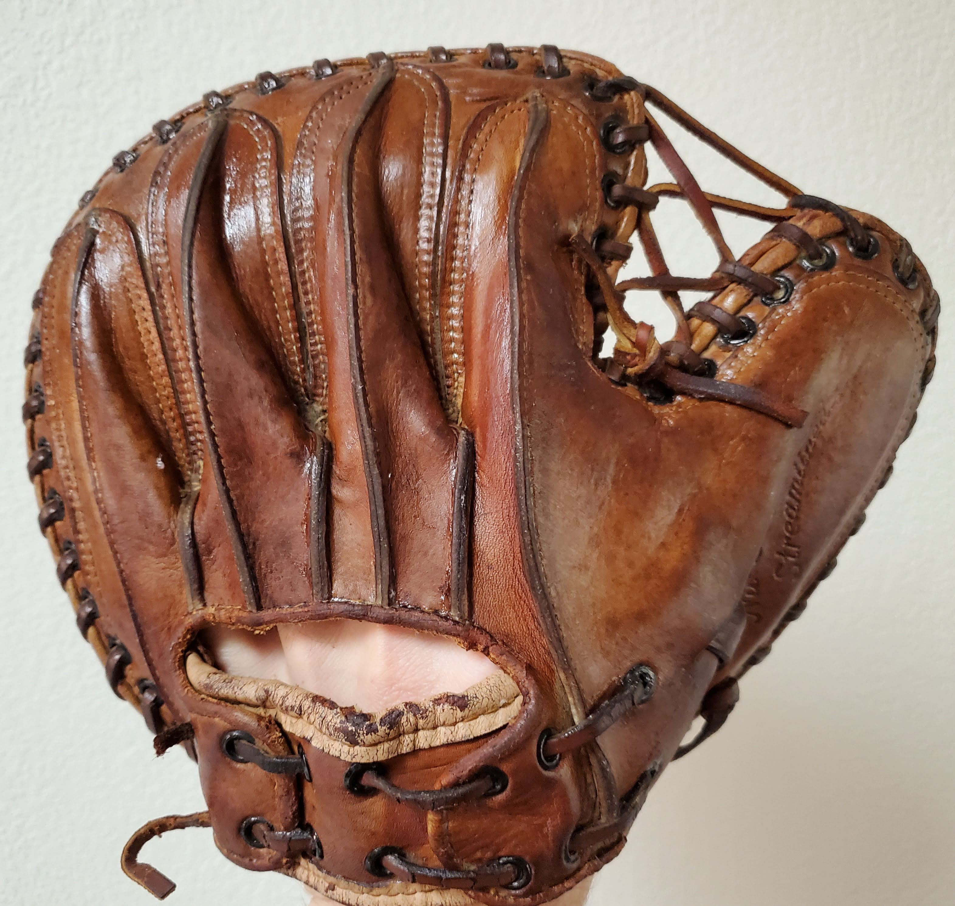 The back surfaces is almost like new as if Mickey Owen himself could don this mitt and receive some fastballs (Chevrons and Diamonds Collection).