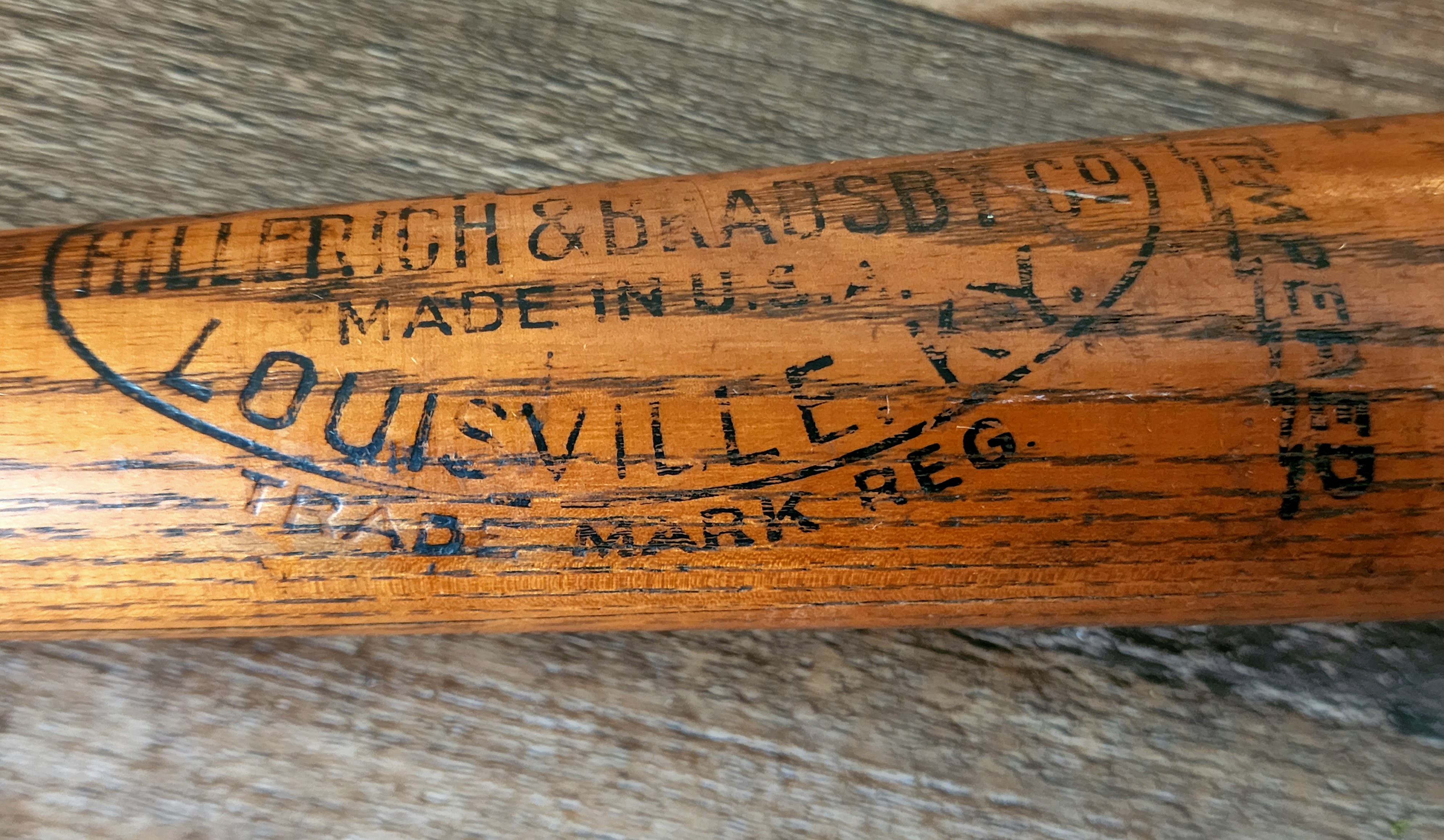 Market interest in wartime bats began to pick up late in 2019 and mirrored the trends of the baseball memorabilia market. Of the service-marked lumber, those marked with “Special Services U.S. Army” garnered the most attention, which drove values to between $200-700 depending upon condition and player endorsement.[6] While scarcity is often a factor in driving values, in the absence of demand, it can have little influence on the price of an item. There are a handful of smaller bat manufacturers who supplied the armed forces with equipment in smaller numbers than H&B. They attract marginal interest from collectors and leave prices consistently below the $50 threshold. After years of searching, a scarce H&B wartime-marked bat finally surfaced.