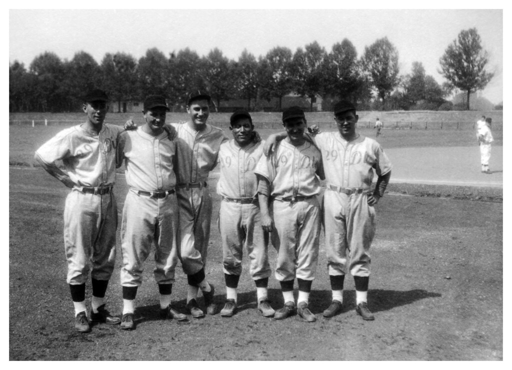 Joe is a fellow baseball aficionado, and lifelong New York Mets fan, and during my visits to our museum we would often talk baseball. Sometime in 2015 or 2016, when I was still on active duty, we were talking about the 29th Division’s “Plymouth Yankees,” the 1943 ETO champions, when Joe mentioned that the division fielded a team in 1945 that was more talented and had included major league players.