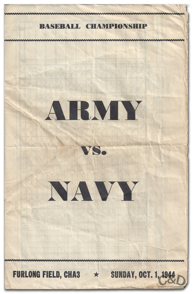 Navy first baseman Johnny Mize, former St. Louis Cardinals and New York Giants slugger, led all batters in average for the seven-game series, hitting .450; however, Phil Rizzuto captured the top position in hits with 12. [12] The Navy’s 48-21 scoring advantage would lead one to assume that the sailors crushed Army pitching with a multitude of home runs. However, with a total of 10 four-sackers, it was the Army lumber that sent more balls over the fences, with Ferris Fain and Joe Gordon each hitting a pair followed by Dillinger, Judnich and Lang with one apiece. For the Navy, Grace, Sears, and Mize accounted for all three of the Navy’s long balls.[13]
