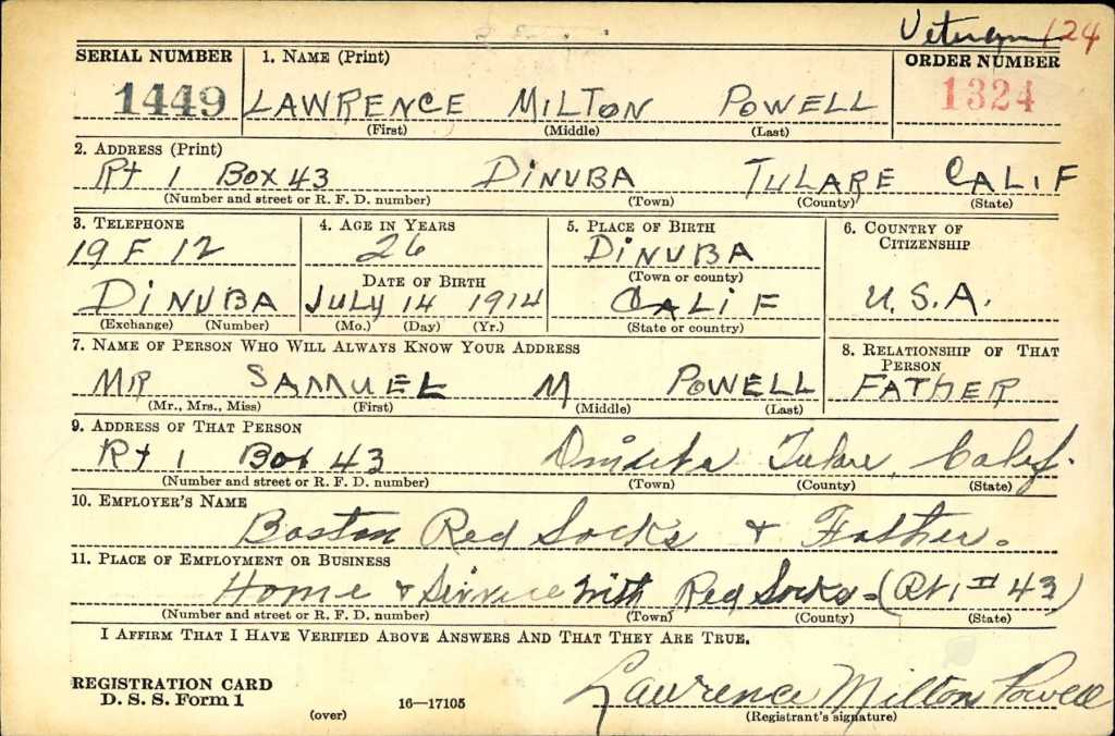 At home in Reedley, California, Powell responded to Fresno Bee beat reporter Ed Orman’s inquiry about the status of his contract. “I had it with me for about a week,” Powell told Orman, “I thought it over, and then just mailed it back last Friday, the pitcher continued. “It seems to be the privilege or rather custom of ball players to fire back contracts they receive when first going to the big leagues.” Powell declined to sign the Red Sox’s contract, “If they get you down in salary, they are likely to keep you there. Maybe they will think more of sending it back. I hope so. Though I do not anticipate any trouble,” Powell stated with confidence.[33] A brief time later, Powell signed with the Red Sox [34] and was ready to report for spring training.