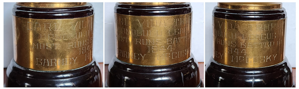 Named the Cronin Series, the playoffs featured the top five teams of both divisions. The series took place throughout the month of April. Aiea’s 17-game winning streak after dropping their opening game of the Cronin Series was a dominant showcasing of the team’s talent as they captured the Honolulu League crown going away. Of the 23 players named to the Honolulu League All-Star team, eight were from the Aiea Barracks Maroons, including McCosky.