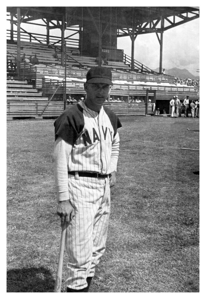 As the juggernaut 7th AAF team also captured the Hawaii League crown in September, the Navy was assembling a powerhouse baseball team of its own to face the Army in the Servicemen’s World Series. The Navy pulled its stars from all the Hawaiian bases to form a collection of all-stars that was superior to any assemblage of players since the 1942 major league midsummer classic. To further bolster their roster, Phil Rizzuto and Dom DiMaggio were flown in from Australia for the seven-game series.
