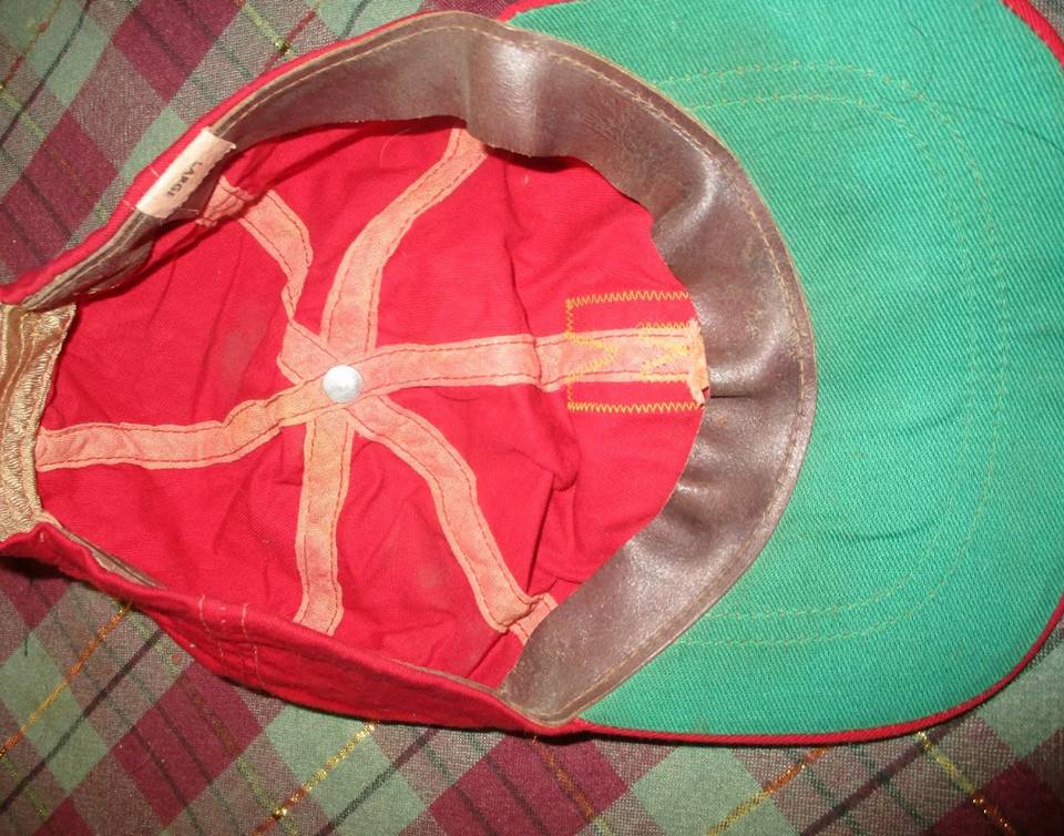 The underside of the cap shows the leather sweatband and the back side of the letter stitching. (source: eBay image).