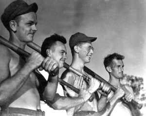 In this image (according to the inscription) are: Jack Hartman of Topeka, Kansas; Teddy Machjer of Worcester, Mass; Robert Smith of Binghamton, NY and Dick Gardner of Canton, Mass.
