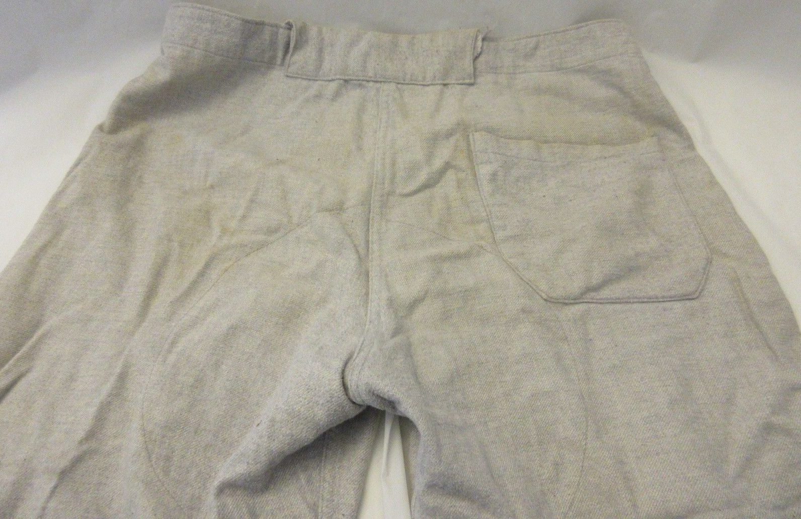 The uniform’s trousers have broad belt loops (the large single loop is visible across the center of the back) and a single on the right (eBay image).