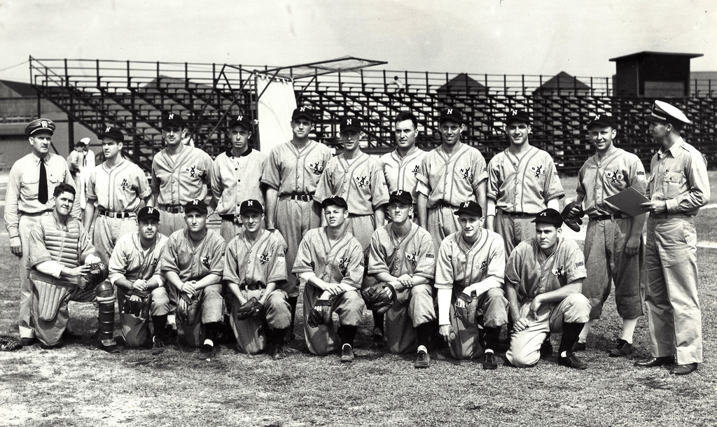 Naval Air Station Jacksonville – 1943. This road gray uniform is one of my favorites with the Naval Aviator’s gold wings with NAS JAX (in chenille) on the left breast and the U.S. shield patch on the left sleeve.