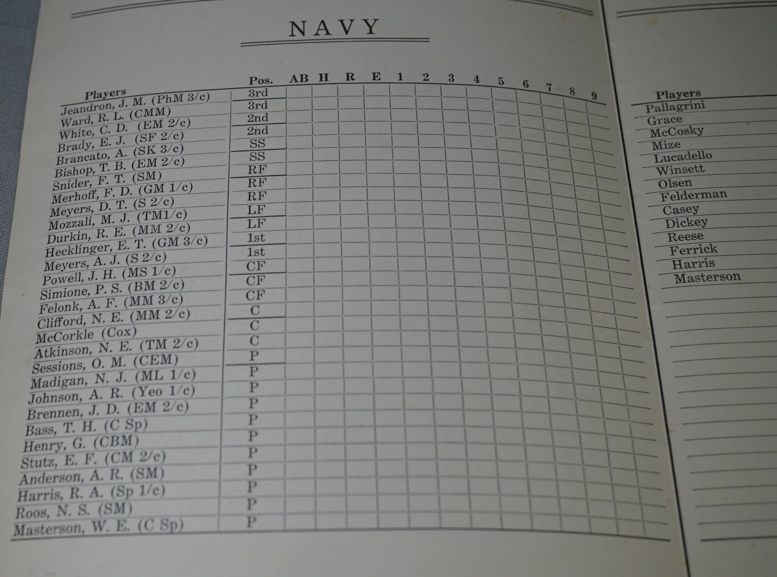 The list of sailors, playing ball on teams in the Hawaii Leagues, were pulled together from several of the teams to form this All-Star team. Some of the men had prior major league and professional experience (source: eBay image).
