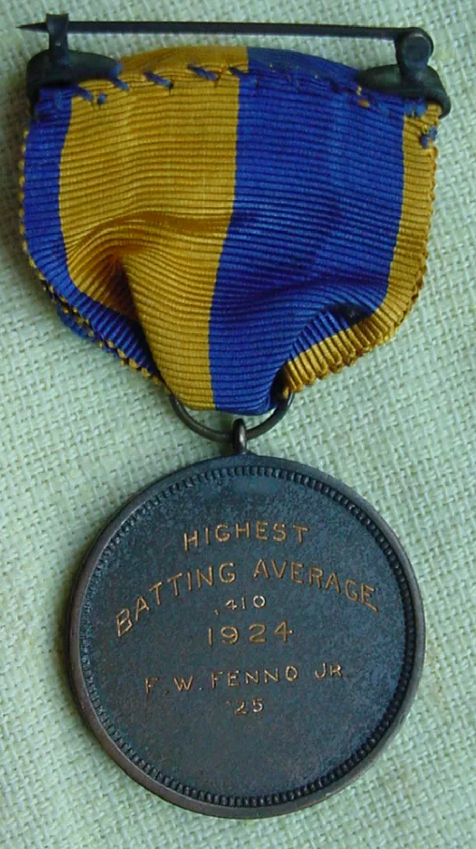 Midshipman Frank Fenno’s Naval Academy award recognizing his .410 batting average for the season.
