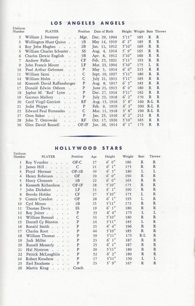 Hollywood Stars and Los Angeles Angels 1943 rosters as of August 21, 1943.