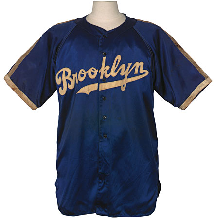 Brooklyn Dodgers manager Leo Durocher’s blue satin jersey. (Source: The Design Morgue)