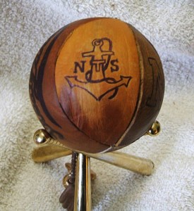 The fouled anchor and the “N T S’ was replicated from a patch seen on the wartime warmup jackets worn by the Great Lakes Bluejackets players and coaches (image source: Don Droke).
