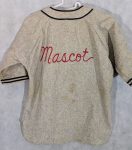 Perhaps one of the more unique features of any jersey showcased on the Chevrons and Diamonds Archive of Military Baseball Uniforms, the chain-stitched lettering spelling out “Mascot” on the back sets this jersey apart. Depending upon the collector, this jersey being worn by a non-player might be a detractor and affect its value.