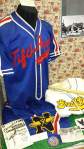 In addition to the two uniform pieces, this group included a small, burgundy-colored (cotton) fabric banner with the team name applied with with white, chain-stitched block letters, spelling out the team name.