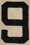 - Numerals: Heavy red athletic felt digit “9” is centered on the back..