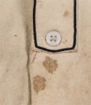 - Soutache: A single, thing line of black rayon material encircles the collar and extends down the placket to just below the sixth button. The single line soutache is on the sleeve cuffs, slight above the edge of the sleeve.