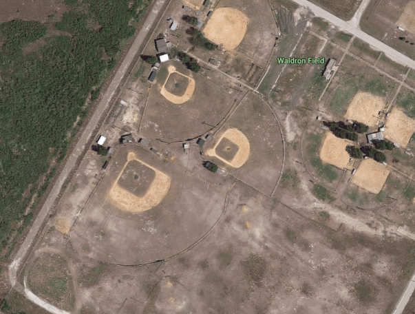 Waldron refers to Waldron Field which is now encompassed within Naval Air Station Corpus Cristi in Texas, was established in 1943 prior to the NAS base completion. It was named in honor of LCDR John C. Waldron, commanding officer of Torpedo Squadron 8, based on the USS Hornet (the squadron was famed for its attack on one of the Japanese carriers during the Battle of Midway losing all hands except for one, Ensign Gay). Though I have yet to discover any information regarding sporting activities at this base, there are still baseball diamonds located adjacent to the still in-use runways.