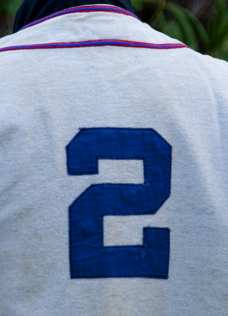 - Numerals: Heavy blue athletic felt digit “2” is centered on the back.