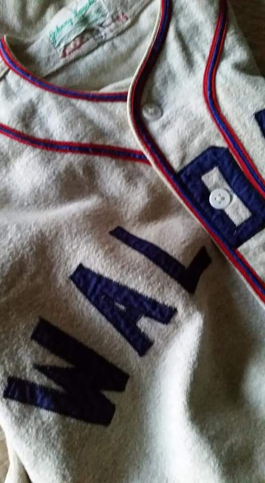 This uniform was recently listed at auction. Most of the military-issued uniforms lack manufacturer’s tags, this jersey has one present in the collar. The tag reads” “Johnny Lynch’s Sports Inc.” It is likely that the jersey was made by one of the larger sporting manufacturers (MacGregor/Goldsmith, Wilson, Rawlings, etc.) and re-labeled by Johnny Lynch’s. The jersey is very typical in its 1940s design with the wool flannel material, a rayon-based soutache on the placket and around the collar and sleeves. The vented armpit gussets are also common for this era.