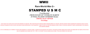 Buyer Beware! The seller is knowinging selling a fake WWII USMC baseball and updated the listing’s description with snippets from my email that informed him of the issues with the baseball, choosing to sell the ball to an unsuspecting buyer who doesn’t read fine print.