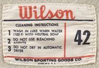 Seeking out existing sources to bring to bear for dating baseball uniforms leaves much to be desired. Wilson Sports Equipment has been in operation for over a century having been founded in 1913 and has been supplying professional, collegiate and amateur baseball teams with togs the end of the first World War. Their tags have experienced a variety of changes and in the last few decades of the 20th Century, revisited some of their earlier tag designs.