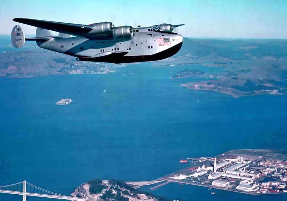 Now serving in the U.S. Navy, this (re-designated) C-98 Clipper takes to the skies over Naval Station Treasure Island in San Francisco Bay.