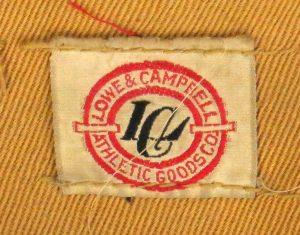 This Lowe & Campbell tag is stitched inside the collar of a 1929 Notre Dame football sideline jacket (image source: Huggins & Scott Auctions).