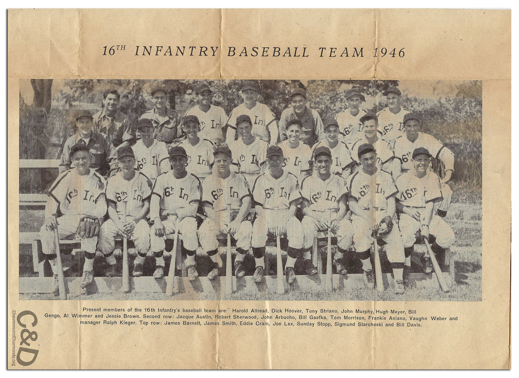 With occupation duties continuing for American armed forces in post-war Europe, competitive and intramural sports continued for the troops. With forces reduced considerably from the 1945 numbers, the size of the baseball leagues were similarly downscaled. Details of the Class “A” League are still being researched along with the roster of the 16th Infantry Regiment as well as the outcome of these games played during the weekend of May 25-26 at Dagwood Field in Landshut, Germany.