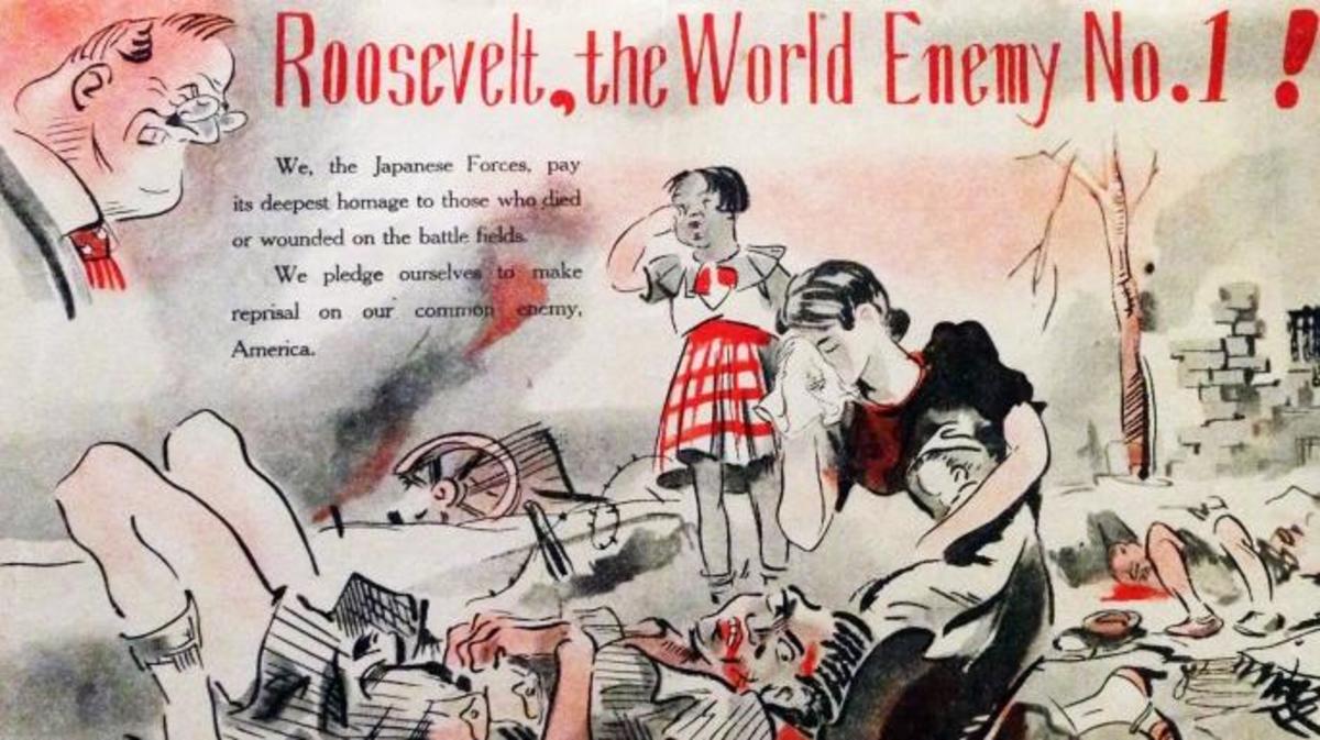 Painting Roosevelt (and Americans) as butchers of Asian people (as seen in this Japanese-produced propaganda piece, despite the atrocities committed by the Japanese throughout Asia and the Pacific), kept their people ready to die for the Emperor to the bitter end of the War.