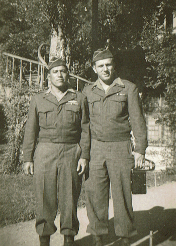 Hess was at some point transferred into the 29th Division and he does not appear in the division’s morning reports that the author had access to. In interviewing Hess’s daughter, it appears during his service in Europe, he was a paymaster specialist who traveled while armed, and with other armed guards, making monthly payroll in cash to units sometimes right at the front. It was a job that exposed him to danger on more than one occasion and helped him to earn a Bronze Star. Once Hess made it into the division, it did not take long for him to matriculate to the baseball team. It was from Hess’ personal photo collection that the only known action shot of the team exists. The photo shows Hess, in his own words, “Pulling a double,” during a game at Ike Stadium in Bremen, Germany against the 1st Infantry Division’s team. After the war, Hess returned to his wife Dorothy and began a successful business career joining Pan American Airways where he worked for 37 years. He stayed connected to baseball by volunteering his time for many years with the Whitestone youth baseball league in Queens. He and Dorothy had two daughters, Pamela and Deborah. When Ken Hess passed away on October 28, 2016, he and Dorothy had been married for 74 years. He also left behind his two daughters, two sons-in-law, three grandchildren and four great-grandchildren.