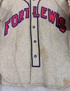 The Fort Lewis jersey shows some infield dirt staining from obvious use. The soutache on the placket has a bluntly squared bottom edge that would be concealed when (the jersey is) tucked into the trousers (source: eBay image).