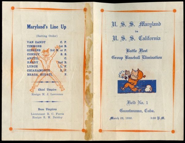 Even since prior to the Spanish American War, baseball has been an integral component of competition between ships. This program shines a light upon an elimination tournament held in Guantanamo Bay in 1930 between ballclubs from two battleships. the USS Maryland (BB-46) and USS California (BB-44).
