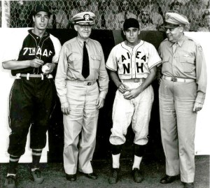“Played exclusively for servicemen, 20,000 of them crowded into Furlong Stadium for each contest. Lt Tom Winsett, formerly of the Senators and Dodgers, managed the Army team, composed of Seventh AAF players, who had just captured the Hawaii Senior League championship.” – source: baseballinwartime.com