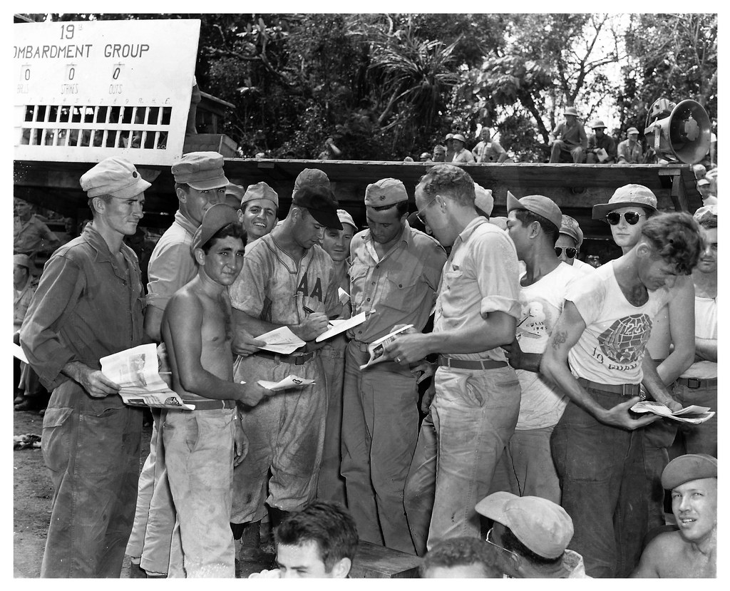 By 1945, there was little doubt as to the outcome of the War however what was not known is when it would conclude and just how many more losses American families would have to suffer. During the previous year, units in the Pacific Theater, while on R&R on a few of the islands that were well protected from the reaches of the enemy, games were being played by the average Joes (which often included professional ball players).