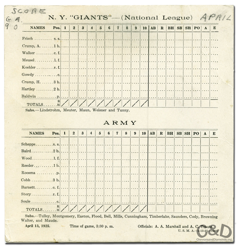 . Return to Library of Military Baseball Scorecards, Score-books and Game Programs
