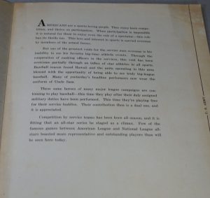 The scorebook’s introduction addresses the unique nature of the game and the significance of such an event (source: eBay image).
