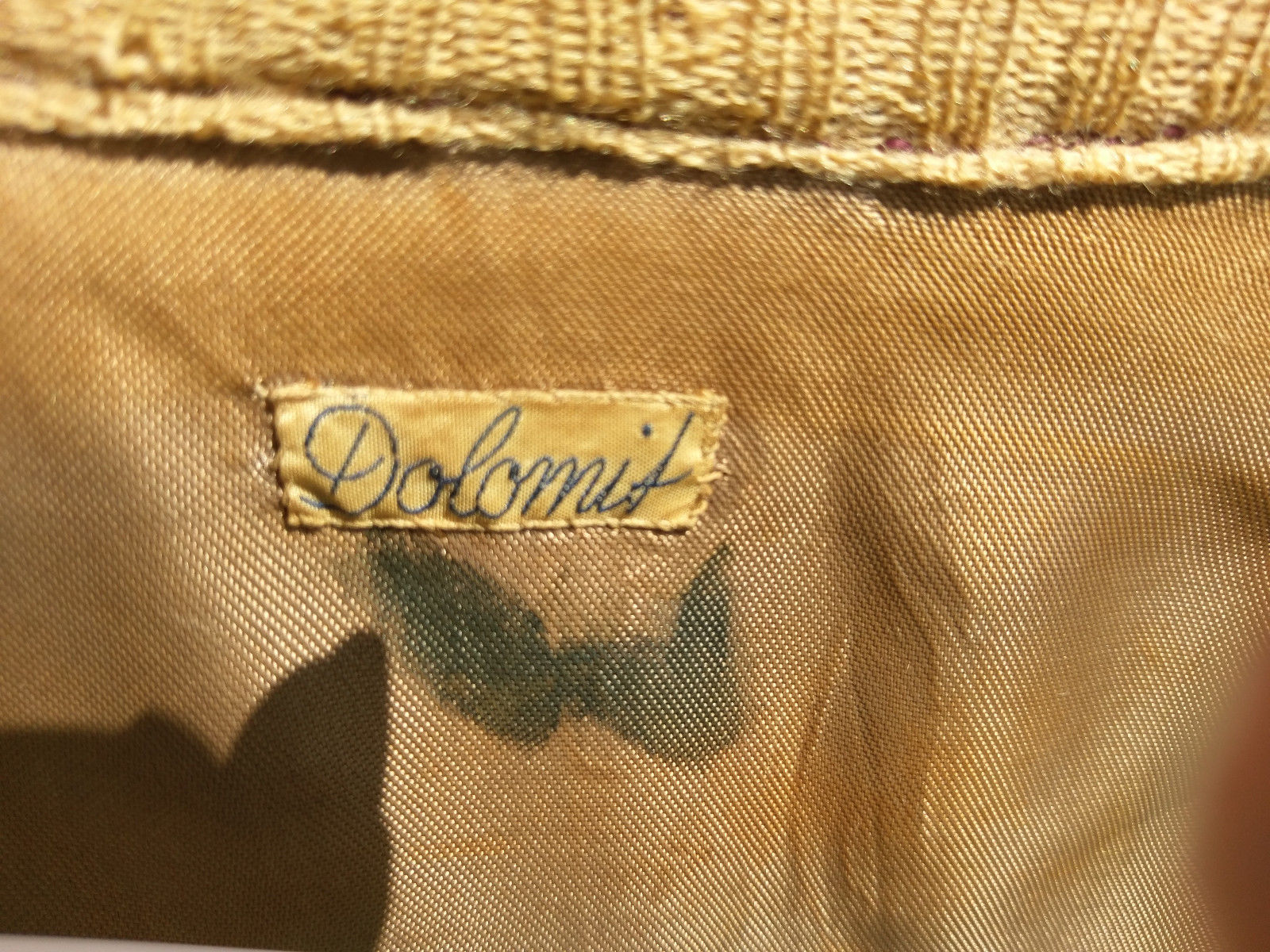 The only tag in the entire group is within the jacket. I have not been able to locate any information for any brand or company name of “Dolomit” (image source: eBay image).