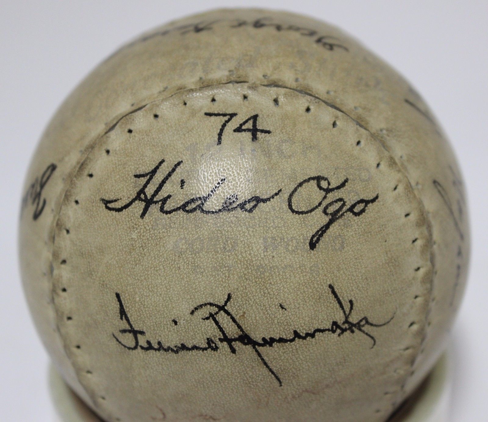 The 74 seems to indicate a specific part of the WWII Japanese internment camp where the team’s players were sourced (source: eBay image).
