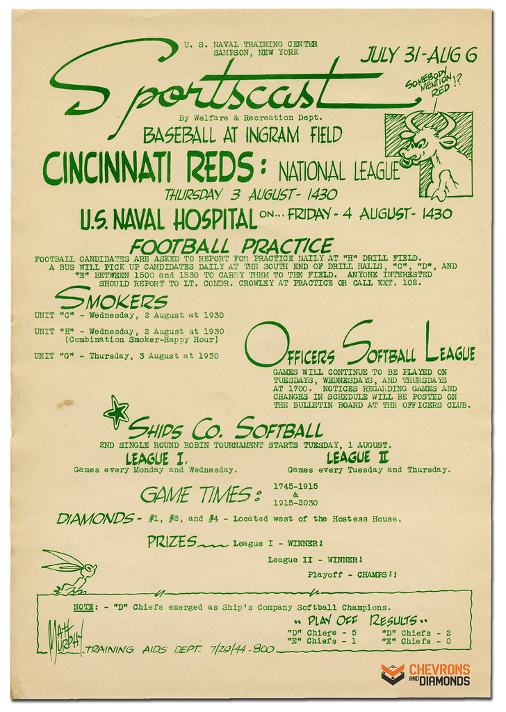 - Sampson Naval Training Station – July 31 – August 6, 1944