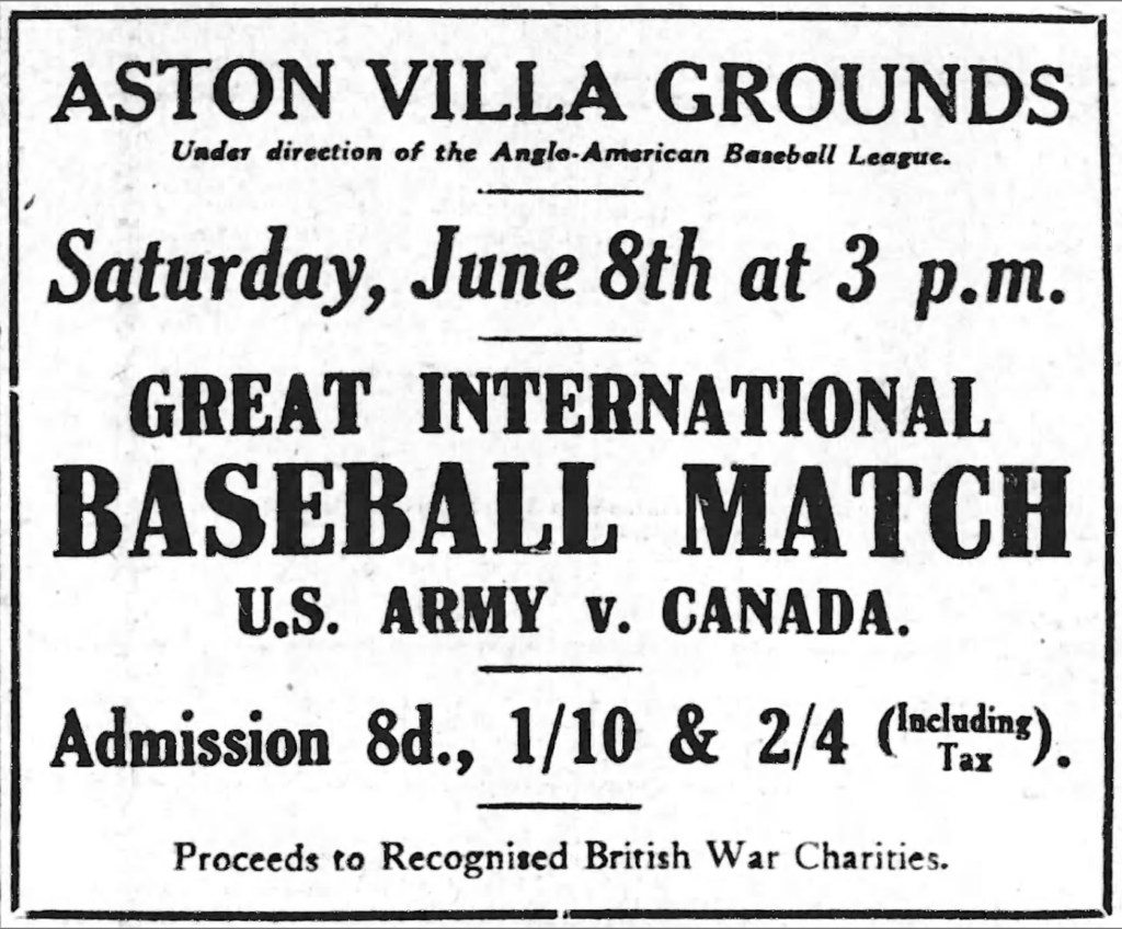With thousands of North American troops stationed in England during the Great War, it was inevitable that baseball would find its way to area athletic fields as U.S. and Canadian troops brought their bats and gloves along with rifles and equipment.