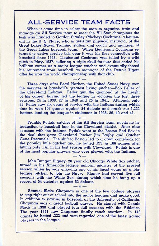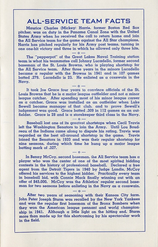 - Historic Game Program Discovery: July 7, 1942 Service All-Stars