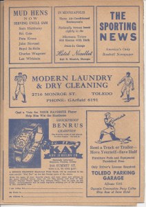 In the second game of the double-header, the Mud Hens hosted Mickey Cochrane’s Great Lakes Naval Training Station Bluejackets, defeating the sailors 7-3.