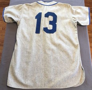 Two large blue athletic felt numerals adorn the jersey’s back (source: eBay image).