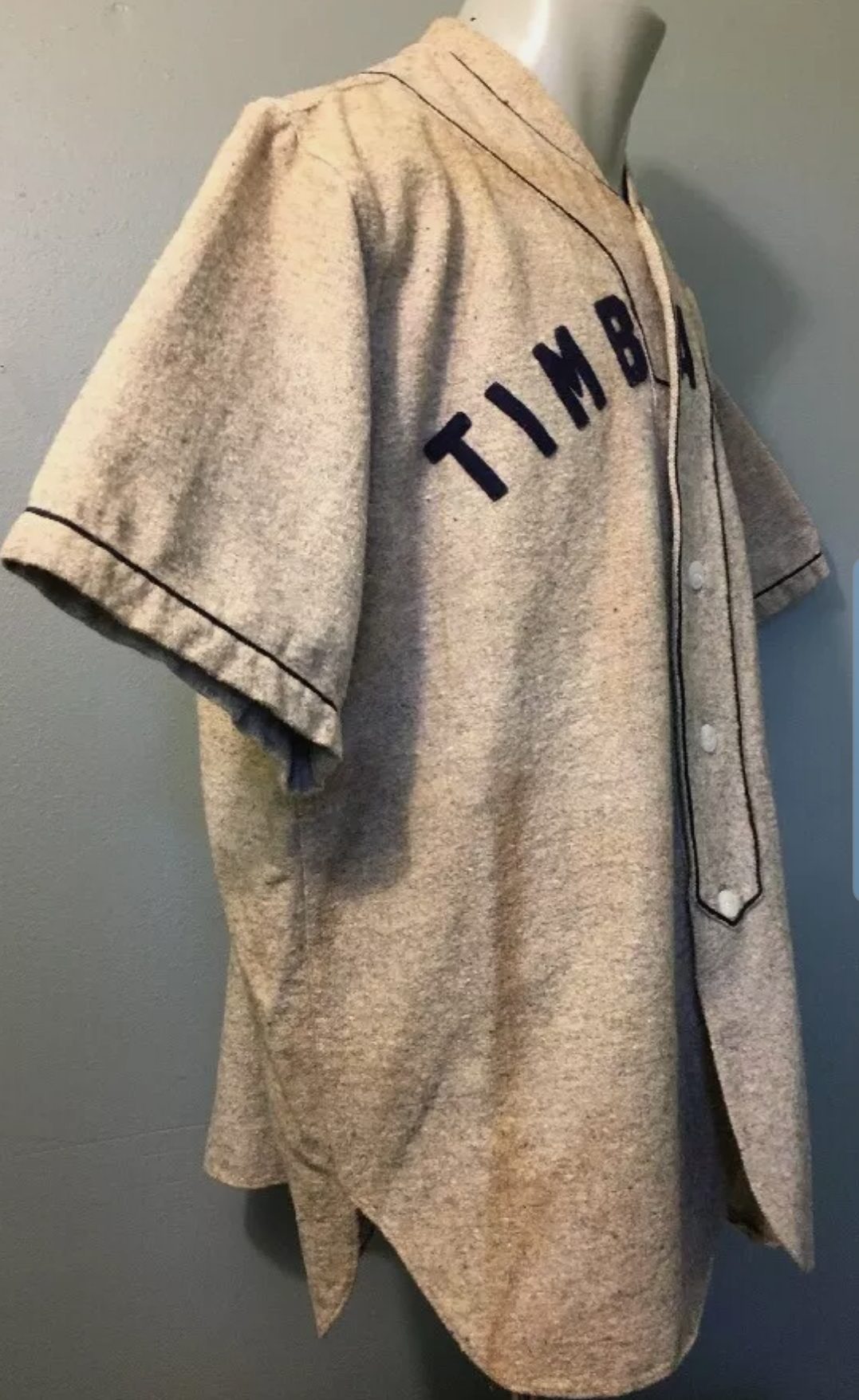 In this side view, the vertical brown stains are quite visible as they are significantly darker than the overall discoloration of the jersey (image source: eBay photo).