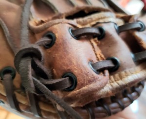 The only lacing on the Mickey Owen mitt that needed replacing was on the adjustable wrist strap which we replaced a few days after re-conditioning the surfaces (Chevrons and Diamonds Collection).
